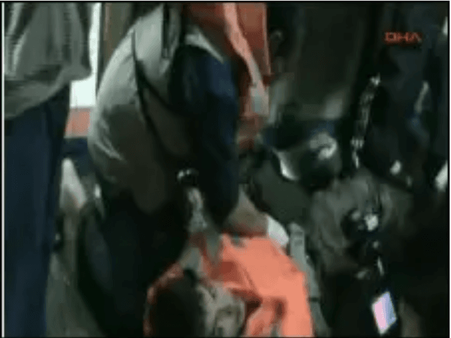 “15 dakika içerisinde 3 helikopter ile üst güverteye asker indirilmiştir. Bu zaman diliminde 4’ü ağır yaralı olmak üzere toplam 19 yolcu ateşli silahlardan kaynaklı olarak yaralanmıştır. Ateşli silahlarla yaralananların çoğunluğunda baş, sırt, gövde gibi hayati yerlere ateş açıldığı saptanmıştır. Heyete göre, güvertede bulunan neredeyse herkes kurşun yarası almıştır. Video çekimi yapan bir kişi de kafasından vurularak öldürülmüştür. Yolcular, gemiye çıkan askerlere metal çubuklarla, sopalarla vurarak mücadele etmişlerdir. Heyet, iki yolcunun sapan kullanarak helikoptere küçük cisimler attıklarını tespit etmiştir. Ayrıca İsrail’in iddiası olan yolcuların ateşli silah kullandıkları yönündeki yaklaşımlar, heyetin tespitlerine göre gerçeği yansıtmamaktadır. Ayrıca yaralanan üç asker, gemide bulunan doktorlar tarafından tedavi edilmiş, hiçbirisinde ateşli silah yarasına rastlanmamıştır.”