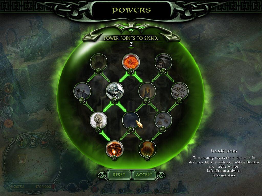 Each faction has a power tree with special abilities, ranging from healing your troops to calling in devastating dragons or Balrogs. These powers can turn the tide of battle and add a layer of strategy as you plan when and where to unleash them.