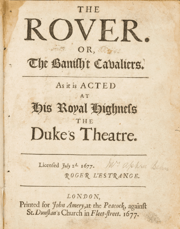 - Behn, Aphra. The Rover or, The Banish'd Cavaliers. The University of Adelaide, Script.