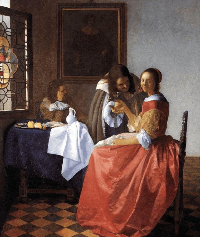 Vermeer. A Lady and Two Gentlemen, c1659. - (Gives a glimpse into the poem of Behn)
