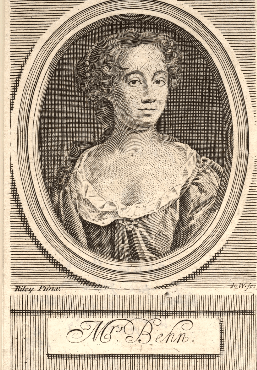 Aphra Behn by Robert White, after John Riley line engraving, 1718