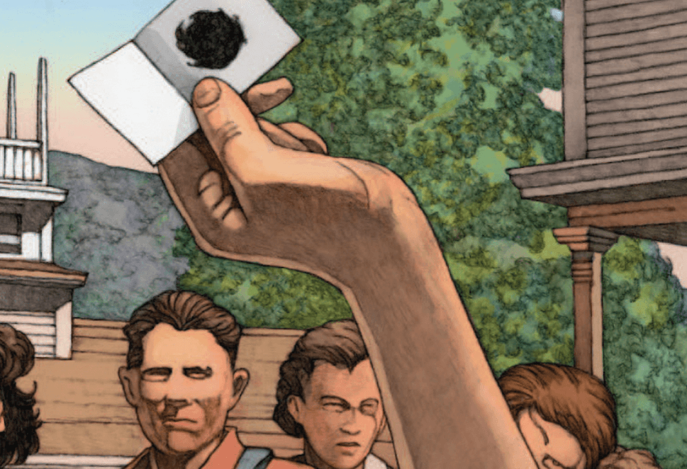 A frame from the adaptation of The Lottery to a graphic novel by Miles Hyman