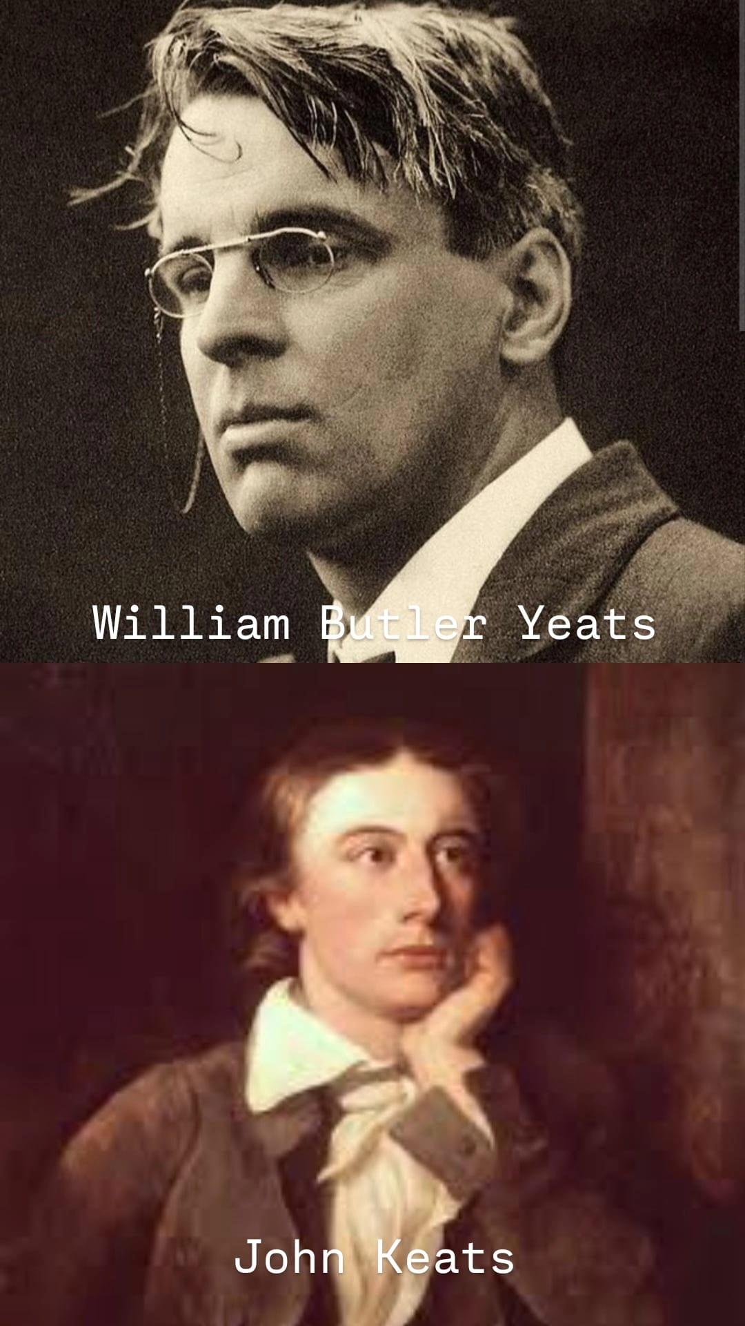 Irish poet and playwright William Butler Yeats (1865–1939) shifted from romanticism to modernism in his writings. He had a deep fascination with spirituality, nationalism, and mythology. Yeats's later poetry often discusses aging and the search for immortality through art, reflecting his personal pondering on life and death.