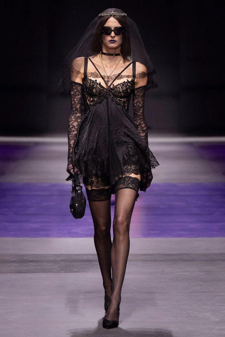 Dantel yine defilelerde sıkça gördüğümüz parçalardan biri. Sadece siyah renk kıyafetlerde değil çoğu renkte dantel detayını görmek mümkün.