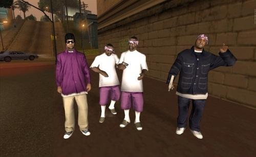 Fotoğraflardan da görüldüğü üzere; Grove Caddesi yeşil rengini, Ballas çetesi ise mor rengini temsil ediyor. Bu iki çeteş savaşı oyun heyecanını ikiye katlar ve görevleri yavaş yavaş başarmaya başlarken para kazanmanın yanında saygınlığımız da artar.