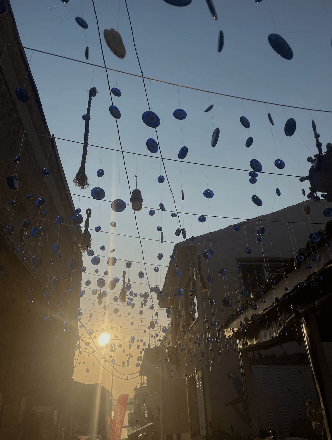 Küçükköyde yürürken nerdeyse her sokakta kafamıza doğru sallanan mavi nazar boncuklarıyla karşılaşıyoruz. Köyün sakinliği, güneşin batışıyla birlikte harika bir görüntü yaratmış oluyor. Her ne kadar zaman zaman yoğun ve kalabalık olsa da köyün atmosferi ve estetikliği bu yoğunluğu gizliyor ve belki de ilk defa kalabalıktan ve sesten rahatsız olmuyorsunuz.