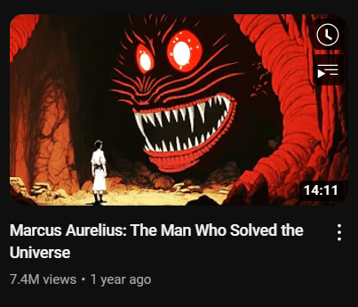 Marcus Aurelius: The Man Who Solved the Universe: https://www.youtube.com/watch?v=tv6W0Nv5ev0