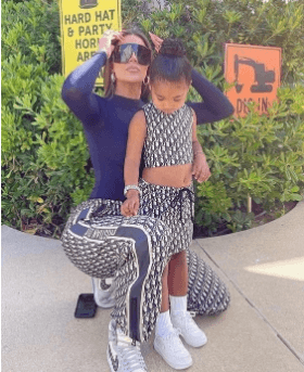 Khloe Kardashian and her daughter True Thompson wearing matching Dior suits.