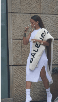 Rihanna wearing Balenciaga fur.