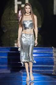 Gigi Hadid running in the Fendace runway show in Milan.