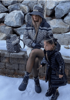 Kylie Jenner and her daughter Stormi Webster wearing matching Dior coats.