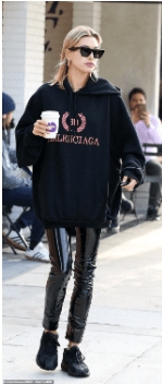 Hailey Bieber on Balenciaga hoodie.