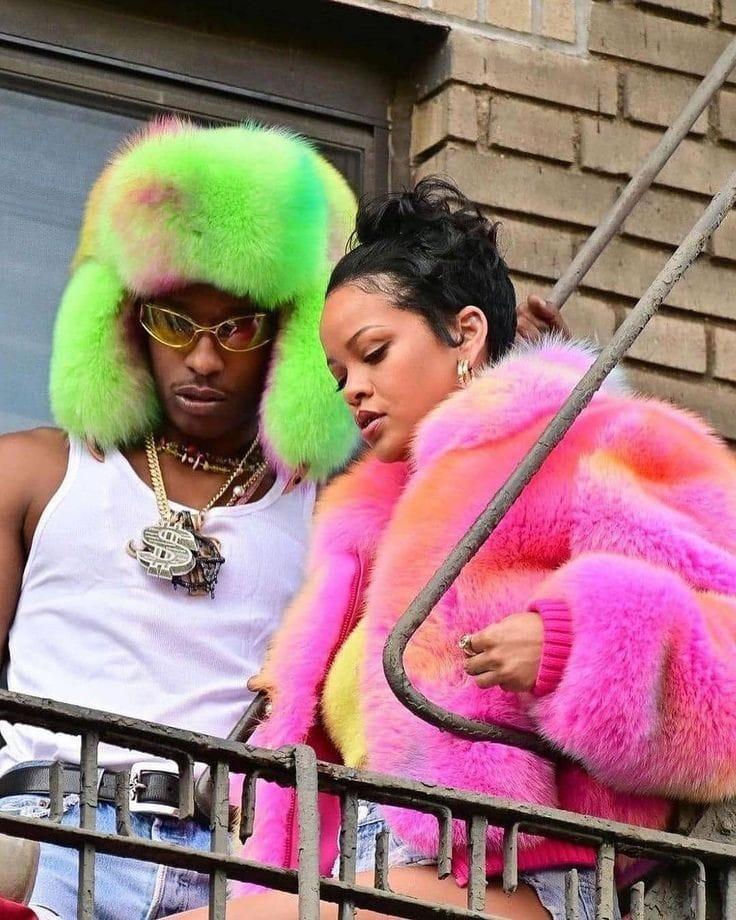 Rihanna & Asap Rocky on Louis Vuitton fur coat