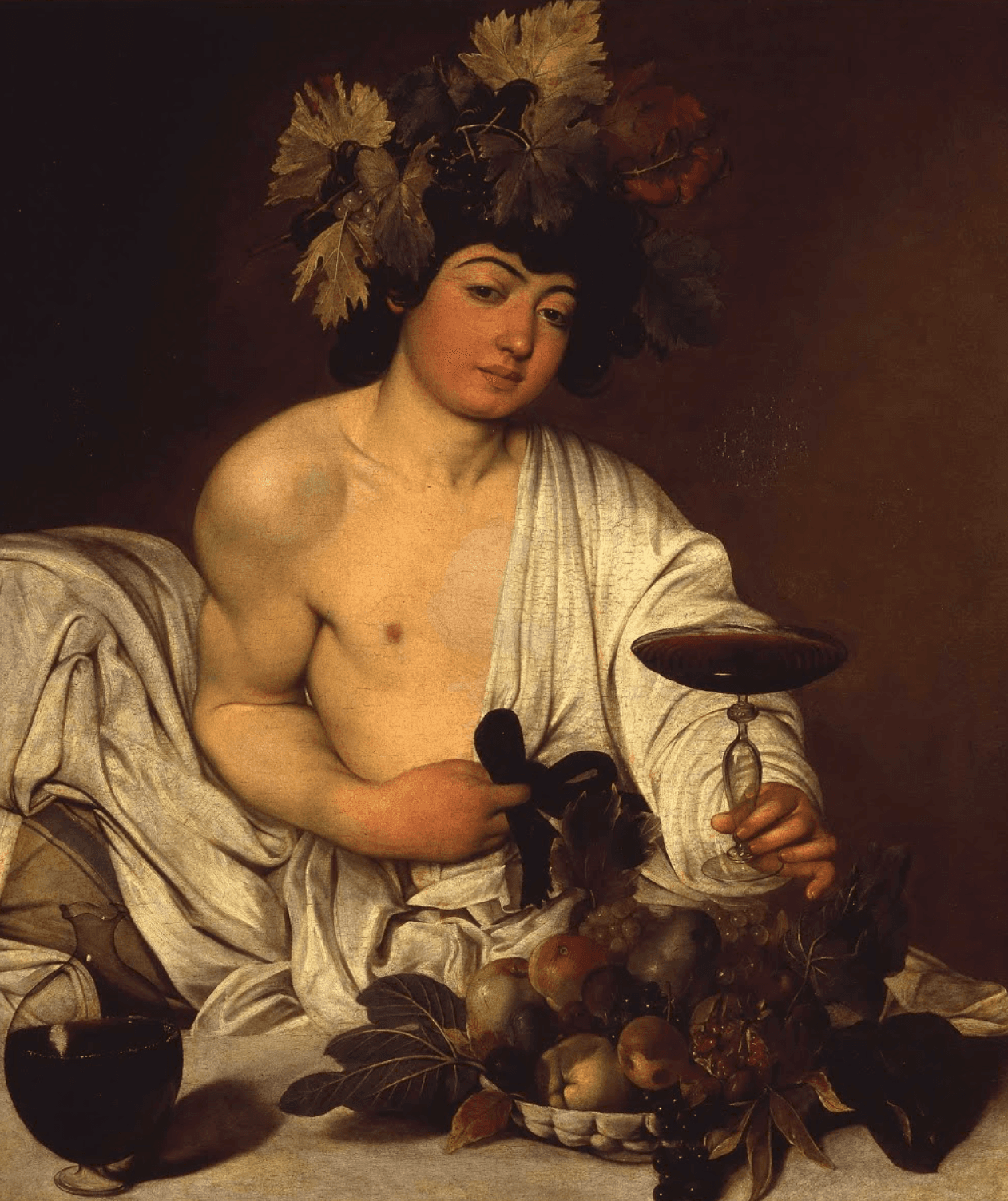 Caravaggio, 1595’te Roma’da Kardinal Francesco Maria del Monte’nin himayesinde çalışırken yarattığı Bacchus adlı eserinde, mitolojik bir tanrının ardında saklı modern bir ruh halini fırçasına taşır.