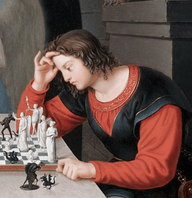 Friedrich August Moritz Retzsch’in 19. yüzyıl ortalarında yaptığı Checkmate (Die Schachspieler), tam da bu ikilemin resmi: insanla şeytan arasındaki sessiz pazarlığın, yaşamla ölüm arasındaki ince sınırın görsel bir alegorisi.