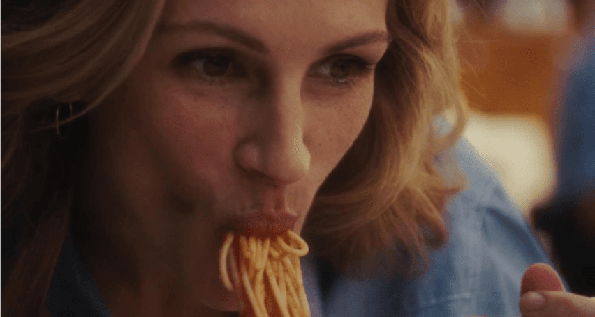 Julia Roberts'ın başrolünde olduğu bu filmde Elizabeth Gilbert (Julia Roberts) İtalya'da makarna ve diğer lezzetlerle buluştuğu sahneler oldukça etkileyici. Yemeklerin mutluluk ve yaşamla bağlantısını harika bir şekilde anlatıyor.