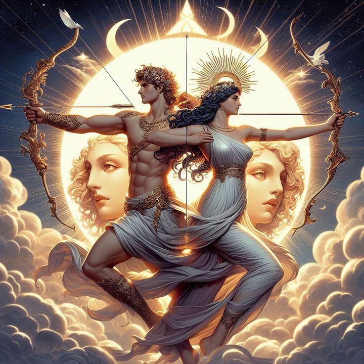 Apollon; Yunan mitolojisinde sanatın, Güneşin, ilhamın, kehanetin, müziğin ve şiirin Tanrısı olarak anılır. Böylesi yetkin bir karakter, birçok mitolojik öyküye ve efsaneye de konu olmuştur. Annesi Leto, babası ise Zeus olarak bilinir ve Artemis adında "ay tanrıçası" olan biri ikiz kardeşi de bulunur. Öyle ki ikisi de ok ve yayı öyle yetkin bir şekilde kullanırlar ki anneleri Leto, onlar için: