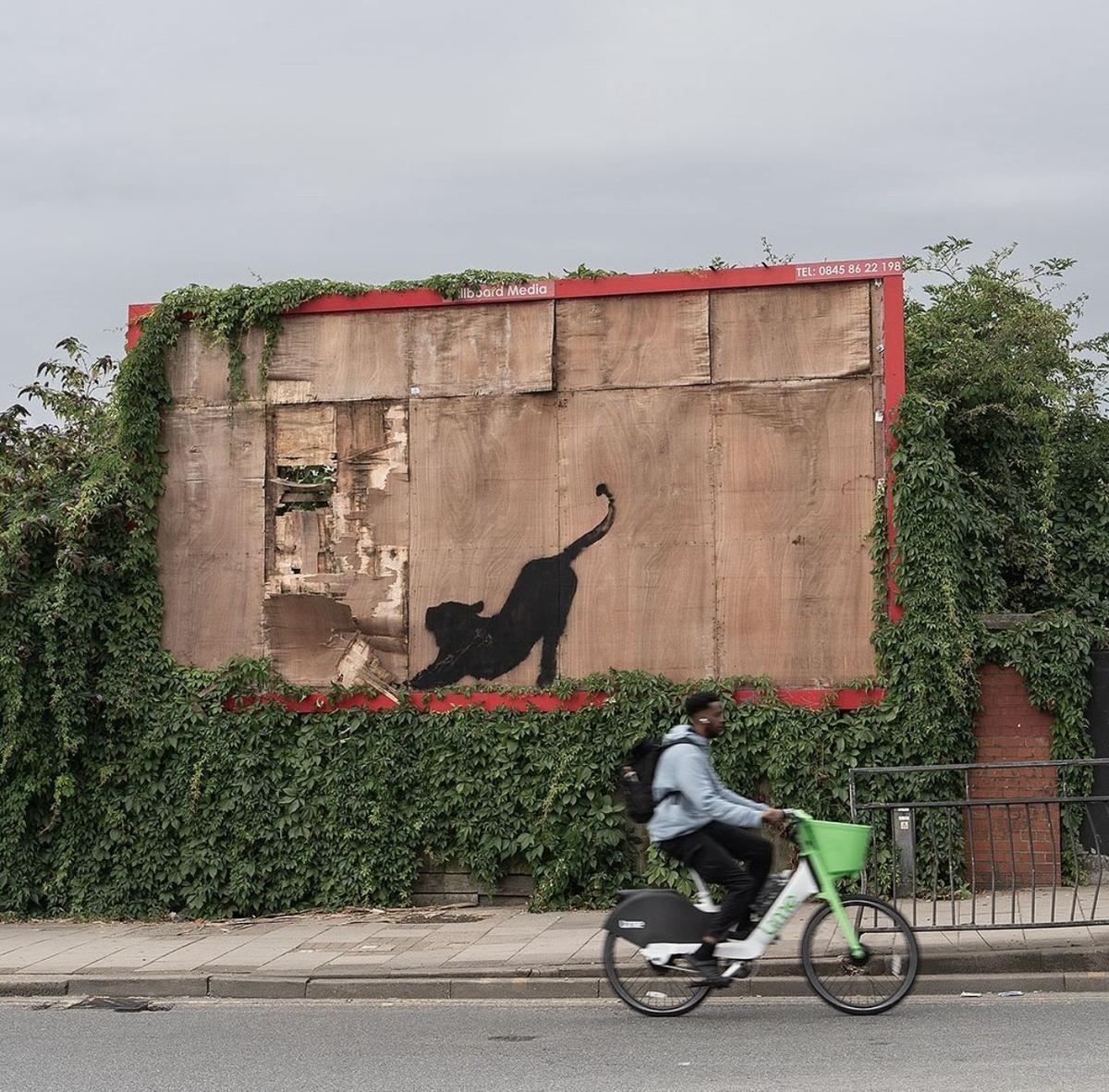 Sanatçının eserlerinden biri Londra’nın kuzeyinde bir reklam panosunu tırmalayan kedi silüetiydi.