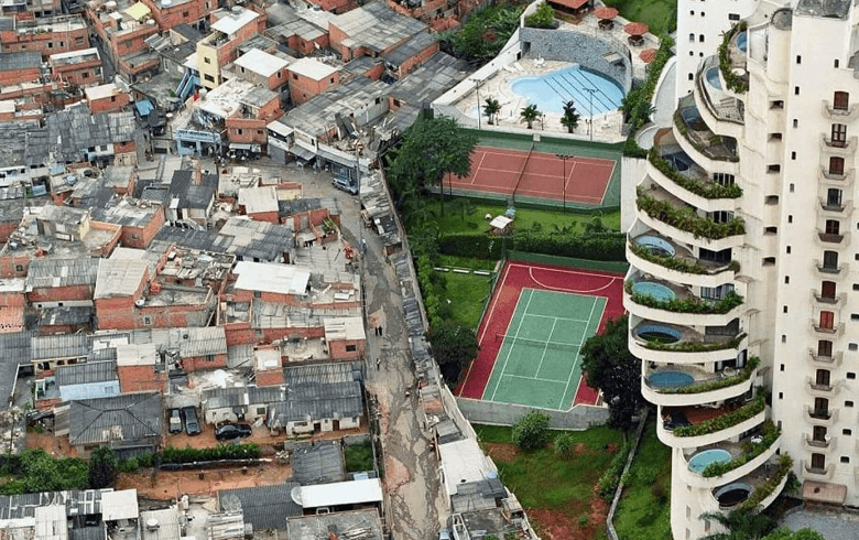 'Sao Paulo, Brezilya'da yoksullar ile yüksek gelirliler arasındaki, yoksulluk sınırı duvarı.'