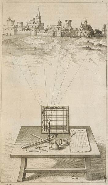 Floransa'daki ünlü katedral Santa Maria del Fiore'nin büyük kubbesini yapan Filippo Brunelleschi, bir eline karşıya konuşlanmış vaftizhanenin resmini ve diğer eline de ayna alarak, sırtını katedrale, yüzünü ise Floransa vaftizhanesi'ne (Battistero di San Giovanni) dönerek, resmin kaçış noktasına açtığı delikten (deliğin içinden), karşısında duran vaftizhaneye bakıyor.