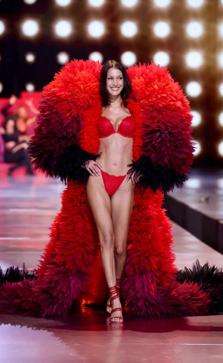 Gigi Hadid, Victoria’s Secret 2024 şovunun açılışını yaptığı güçlü başlangıçına rağmen devasa pembe kanatlarla yürürken zorlandığı için bazı eleştiriler aldı. Fakat eleştirilerin ötesinde Gigi’nin güzelliği, büyük ve pembe kanatların altında gölgelenmek bi yana onların şovun bir parçası olduğunu unutturacak kadar çarpıcıydı.
