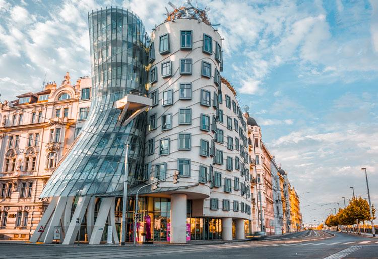 Modern mimarinin Prag’daki en dikkat çekici örneklerinden biri olan Dans Eden Ev, tartışmalı inşa sürecine rağmen kısa sürede şehrin sembollerinden biri haline gelmiştir. Orta Çağ’ın gotik ve barok mimarisiyle ünlü Prag 1. Bölgesi'nde yer alan bu yapı, dans eden bir çifti andırır. Üst katında, Vltava Nehri ve Prag Kalesi manzaralı bir Fransız restoranı bulunur.