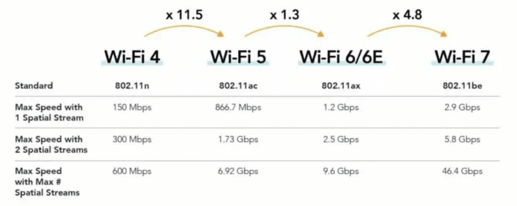 IEEE 802.11be standardıyla tanımlanan WIFI-7 daha yüksek hız, daha düşük gecikme süreleri ve daha fazla cihaz kapasitesi için geliştirildi.