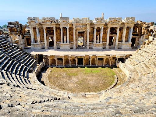 Hierapolis, MÖ 2. yüzyılda Bergama Krallığı tarafından kurulmuştur ve Roma İmparatorluğu döneminde önemli bir termal sağlık merkezi hâline gelmiştir. 12.000 kişilik kapasitesiyle görkemli bir yapı olan Antik Tiyatro Roma mimarisinin zarafetini yansıtır.
