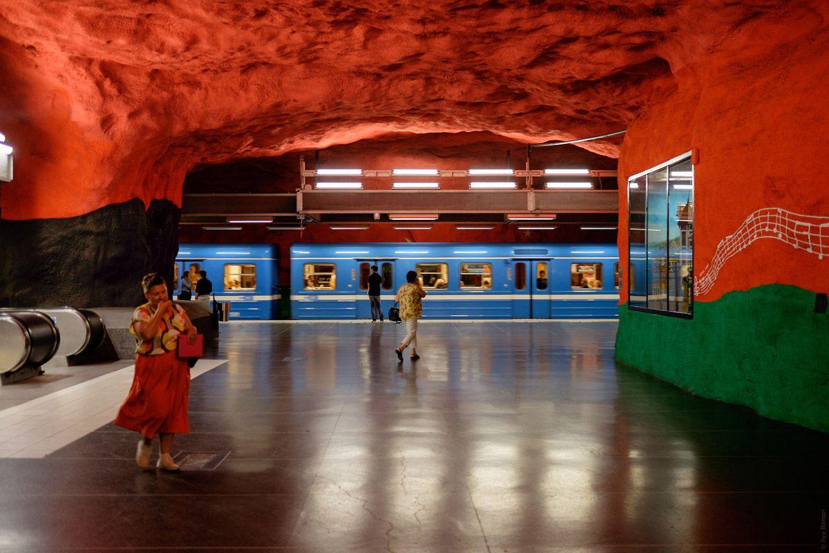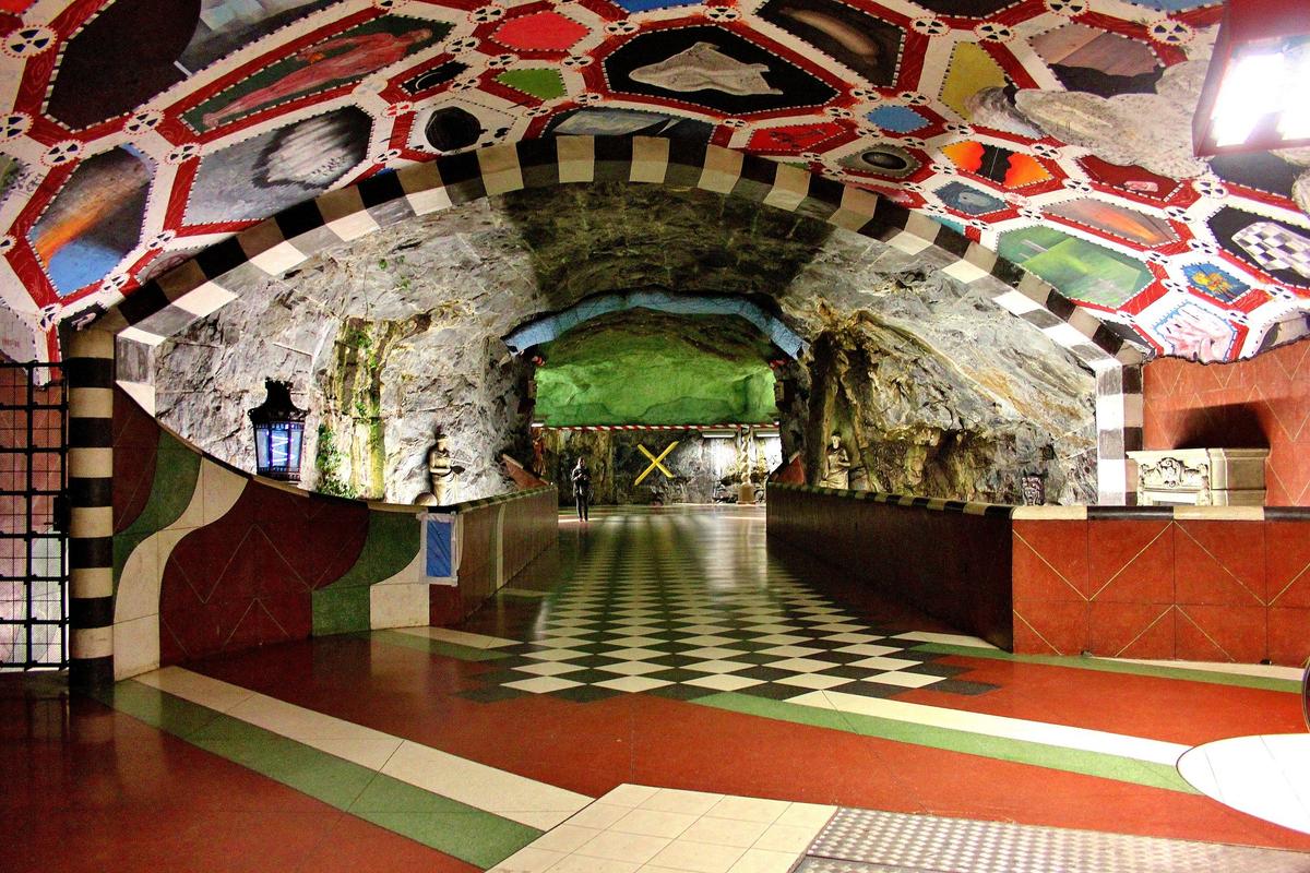1957'de açılan T-Centralen, Stockholm'ün ana metro istasyonudur. Bu metro, metroların sanatsal yolculuğunun başladığı yer olarak biliniyor. İstasyondaki mavi-beyaz desenler ve freskler, işçilerin çalışmalarını simgeliyor.