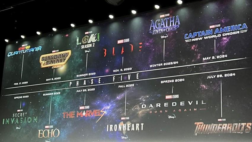 Aşağıda bulunan görselde MCU'nun gelecek olan beşinci evresindeki projeleri tarihleriyle beraber görmekteyiz.