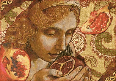 The pomegranate is rich in symbolism, representing both the vitality of fertility and the necessary pause to break the cycle of life. Its many seeds are a powerful symbol of fertility and fertility, reflecting the fruit's association with fertility and prosperity.