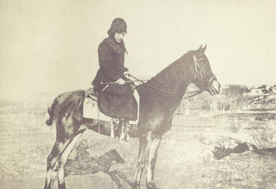 Fikriye Hanım Çankaya Köşkün'de at binerken çekilmiş fotografı.