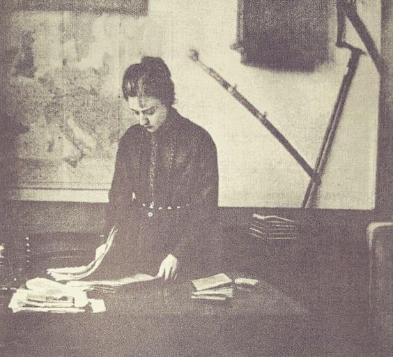 Mustafa Kemal Paşa'nın çalışma masasını düzenlerken çekilmiş fotografı.