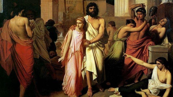 Bu evlilikten iki kız çocuğu dünyaya gelmiş. Kızlardan biri şu ünlü Antigone. Gel zaman git zaman Thebai şehrinde olumsuz olaylar yaşanmaya başlar. Salgın hastalıklar baş gösterir. Bereketsizlik başlar. Ekinler büyümez, kadınlar çocuk doğuramaz olmuştu. Halk kralları Oidipus’tan yardım istemiştir. Oidipus yine kahinlere danışır. Kahinler eski kral Laios’u öldüren kişinin hala Thebai şehrinde olduğunu ve onun cezalandırılması gerektiğini söylerler. Bunun üzerine Oidipus başlamış işin aslını araştırmaya.
