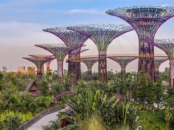 Gardens by the Bay, 2005 yılında Singapur Hükûmeti tarafından başlatılan “City in a Garden” (Bahçedeki Şehir) vizyonunun somut bir tezahürüdür. Amaç, tropikal iklimin olanaklarını avantaja çevirerek modern kent dokusuna doğayı entegre edebilmek, ekolojik çeşitliliği desteklemek ve Singapur’u küresel ölçekte çevreci bir metropol olarak konumlandırmaktır. Proje, uluslararası bir yarışma sonucu Grant Associates ve WilkinsonEyre iş birliğiyle şekillendirilmiştir. Resmî açılışı 2012 yılında gerçekleştirilmiş ve o tarihten bu yana yılda milyonlarca yerli ve yabancı ziyaretçiyi ağırlamaktadır.