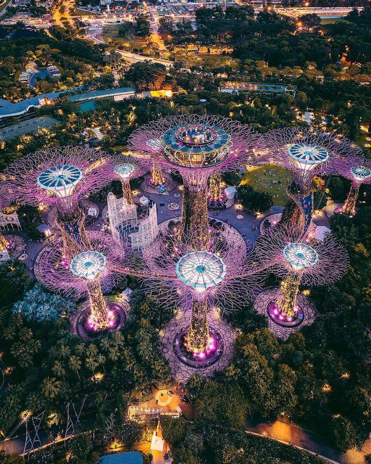 Supertree Grove: Yalnızca Gardens by the Bay’in değil, aynı zamanda tüm Singapur’un sembollerinden biri haline gelen bu dev yapılar, 25 ila 50 metre arasında değişen yükseklikleriyle futuristik bir görsellik sunar. Supertree’ler aslında dikey bahçelerdir; yaklaşık 200'den fazla farklı bitki türü bu yapay ağaçların gövdelerini sarmaktadır. Aynı zamanda enerji üretimi, yağmur suyu toplama ve havalandırma gibi işlevsel roller üstlenerek sürdürülebilirliğe hizmet ederler. Her akşam gerçekleşen Garden Rhapsody isimli ışık ve müzik gösterisi ise ziyaretçilere doğa ile teknolojinin senkronize olabileceğini bir kez daha hatırlatır.