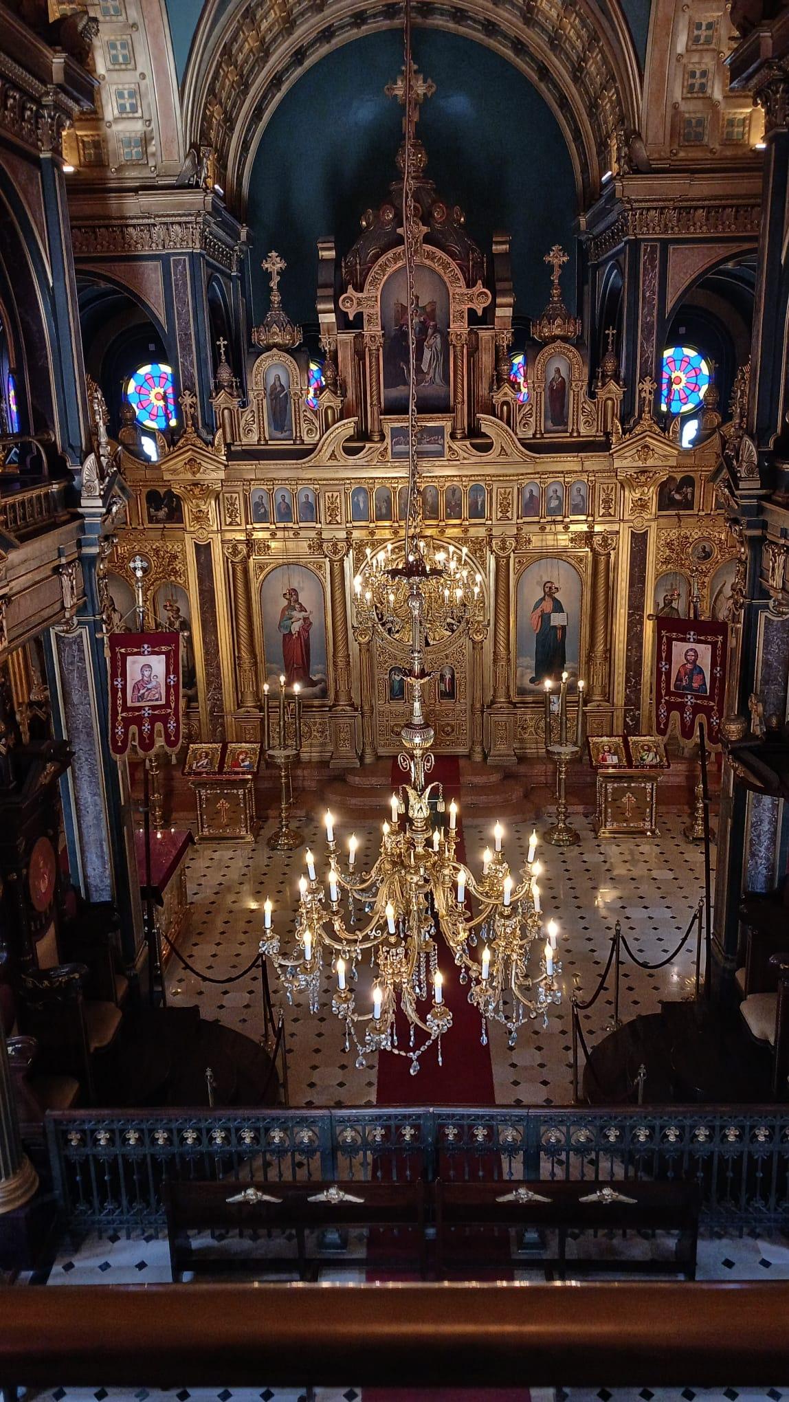 İçerdeki atmosfer çok farklı. Hem içerdeki ikonlar, tablolar hem süslemeler hem de melek figürlü ibadet banklarıyla zenginliğini ortaya koyuyor Haliç'in incisi.