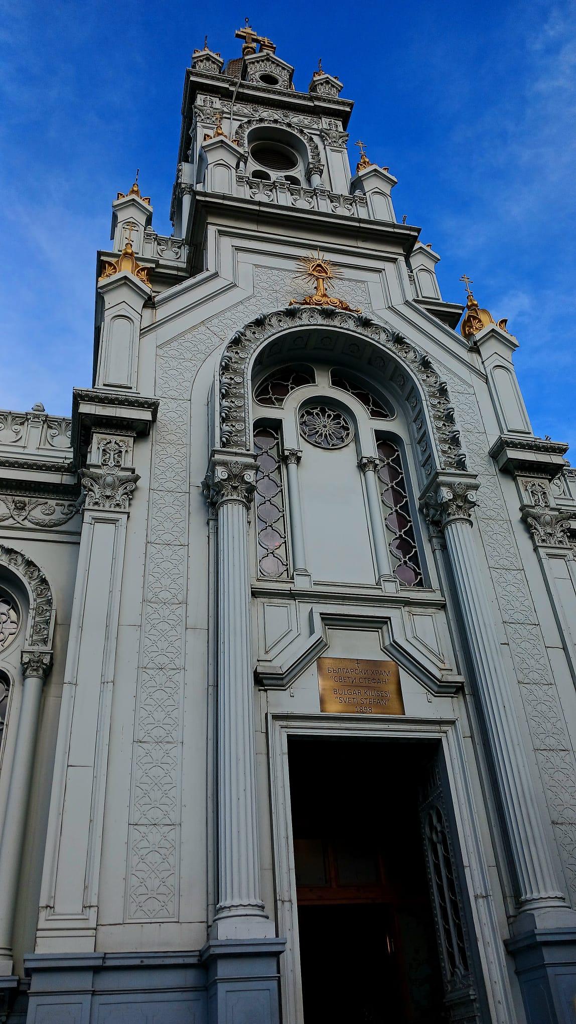Kilise, 8 Eylül 1898 yılında açılmış, yapımında yalnızca dökme demir ve çelik kullanılmıştır. Bu miktar yaklaşık 500 ton civarındadır. Dünyada benzerleri bulunmaktadır ancak hâlâ etkin ve sağlam olan tek yapı Sveti Stefan Kilisesi'dir, o yüzden "dünyada örneği tek" diyebiliriz. Neo-Gotik/Neo-Barok tarzda inşa edilmiştir. Çan kulesi bir tanedir ve yüksekliği 40 metredir. Üç tane kubbesi vardır. Kilisenin mihrabı Haliç'e bakar.