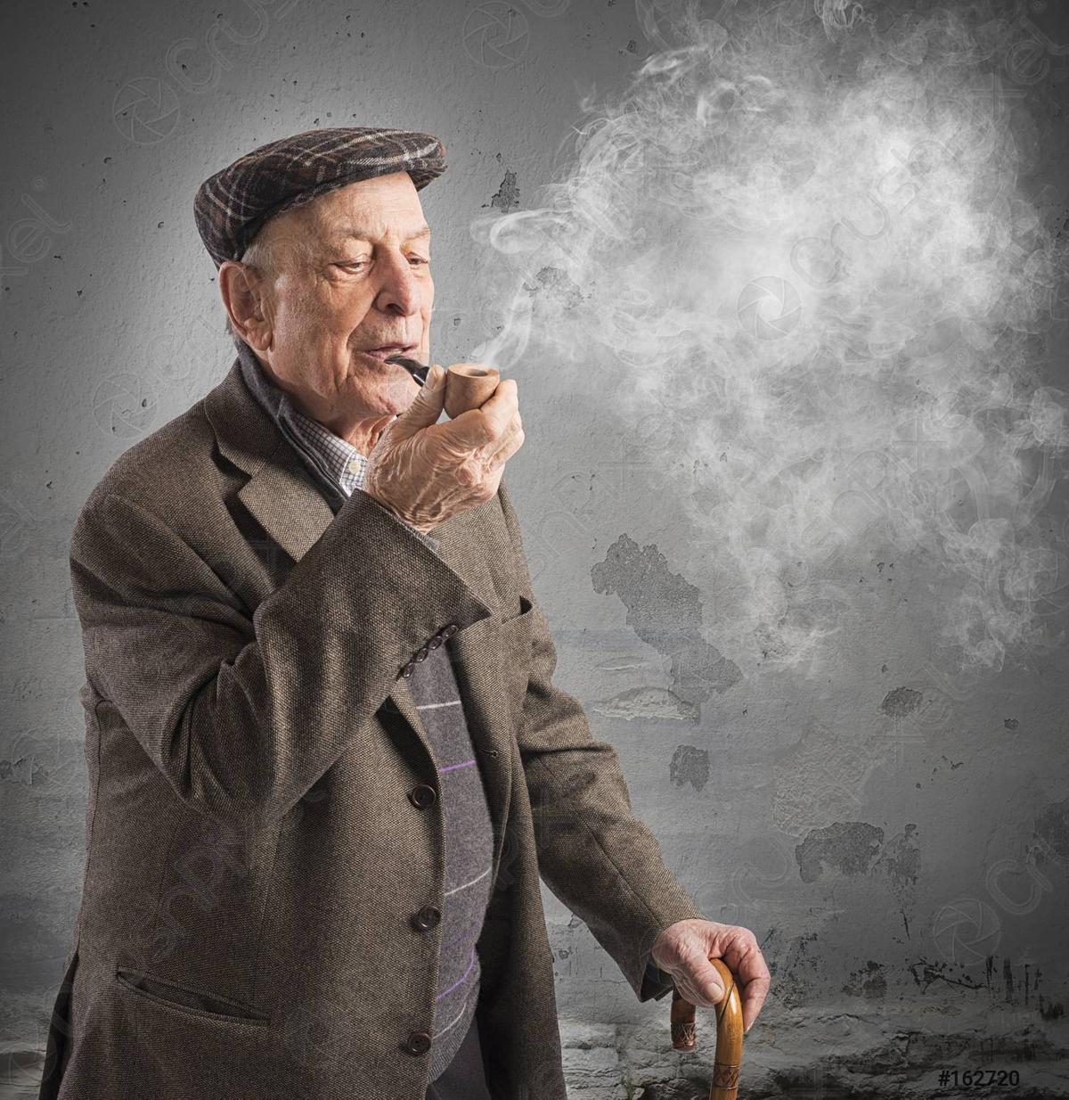 This is not an old man smoking a pipe. This is an image of an old man smoking a pipe.