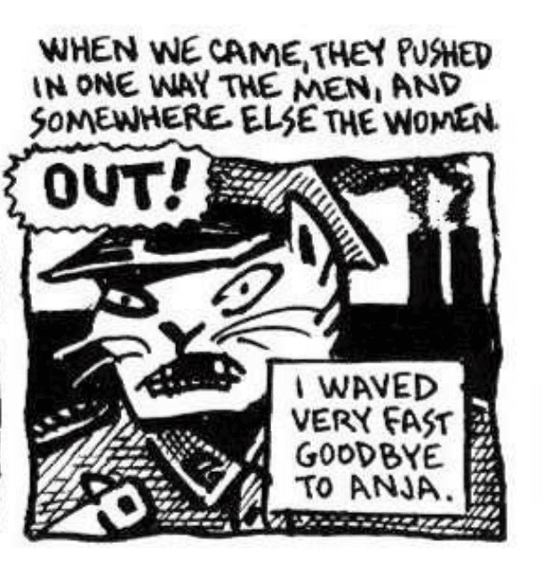 Artie has never met many of the people from Vladek’s life and lacks sufficient information to create accurate representations of many of the scenes he describes. Artie does not know, for example, what his paternal grandfather or aunts looked like since there are no surviving photographs of them. He struggles to imagine the layout of the tin shop where Vladek worked during his time in Auschwitz, and Vladek often draws Artie diagrams when trying to explain the layout of a bunker or a concentration camp. All these gaps in his knowledge highlight the limitations of Artie’s imagination and experience. At the same time, Artie’s mouse head creates an undeniable connection between him and all other Jewish people.