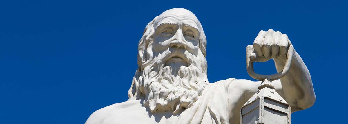 M.Ö. 400’lü yıllarda yaşamış Sinoplu Diyojen mutluluğun anlamını öyle güzel ifade etmiştir ki hepimiz bir fıçının içinde yaşarken mutlu mesut, her şeyin sahibi Büyük İskendere ettiği o harika kelamı biliriz, "Gölge etme başka ihsan istemem". Bireysel yolcuğunun nirvanasında Diyojen etrafı izlemenin, en az şeye ihtiyaç duyarak yaşamanın asıl mutluluk olduğunu biliyordu.
