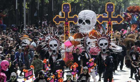 During this day, families welcome back the souls of their deceased relatives or friends for a brief reunion including food, drink, and celebration. It’s believed that the border between the world of spirits and the real world is opened and the souls of the dead return to the real world to feast, drink, dance, and play music with their loved ones. In turn, the living family members treat the deceased as honored guests in their celebrations and leave the deceased’s favorite foods and other offerings at gravesites or on the ofrendas built in their homes. Ofrendas can be decorated with candles, bright marigolds called cempasuchil, and red cock’s combs alongside food like stacks of tortillas and fruit. In addition, sugar skulls are decorated and placed on ofrendas of loved ones. A Calavera, or sugar skull, is a decorative skull made (usually by hand) of either sugar or clay which is used in the Mexican celebration of the Day of the Dead. In modern times, during the Day of the Dead festivities, you can see that people generally wear skull masks.