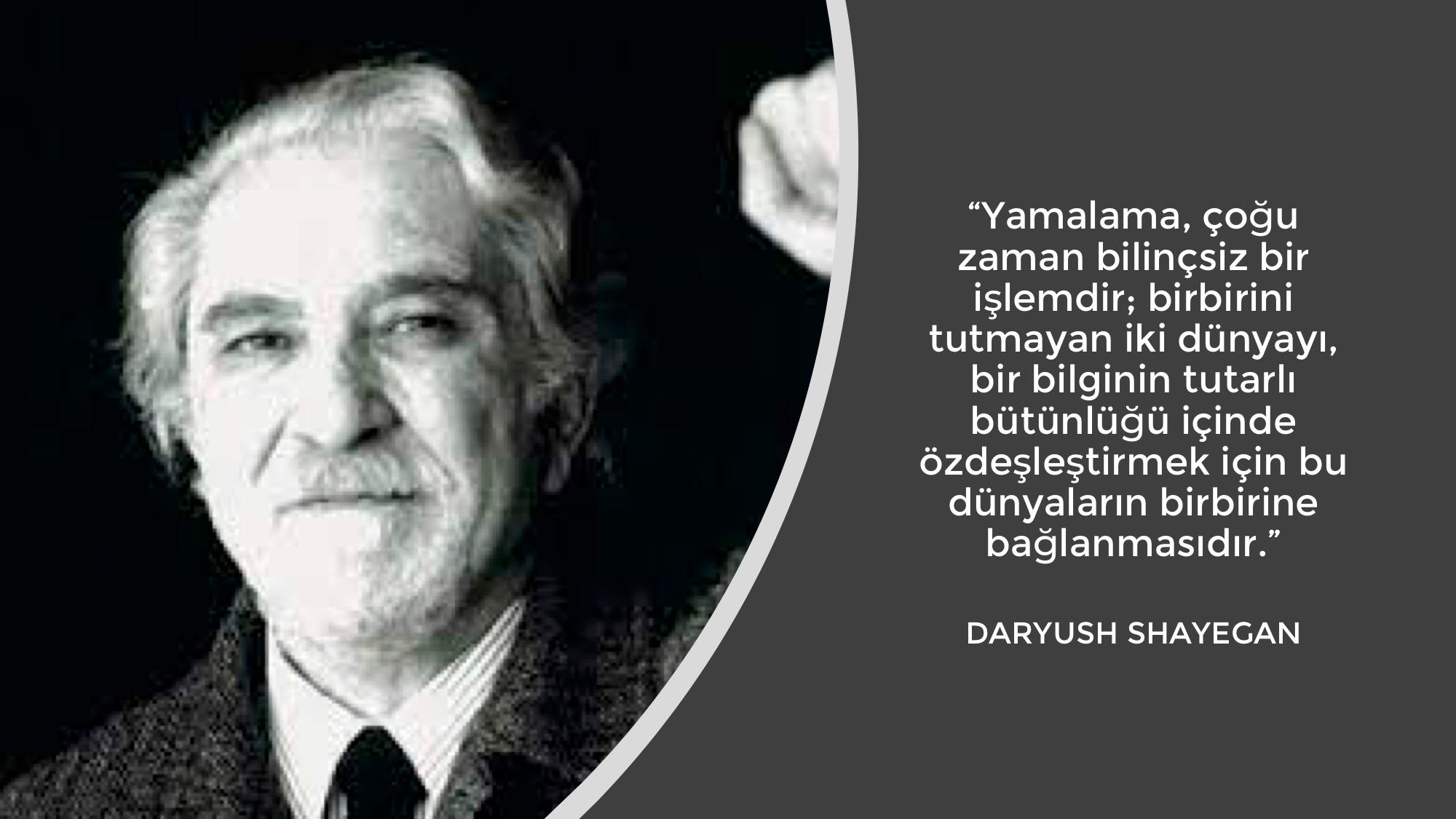 Doğu medeniyetlerinde hafızanın ortak merkezine bağlı imgeler, cezbe halinde ortaya çıkan parçalı mistik zamanlar ve estetik değerleri yüksek üst bir dille yazılan metinler vardır. Shayegan, bu imgeleri, sesleri bir bütün olarak görür ve dünyaya bu bakışla bakmaktadır. Çünkü estetik değerlere bağlı kalınarak üretilmiş her metin gelecekte kendine bir yer edinir. Estetize edilen görüngü dünyası çelişkilerden ve çatlamalardan uzaktır. Shayegan, kendi kültüründe verilen mücadelede konunun ve mitsel yapının değişmediğini vurgulamaktadır. Örnek olarak da 10.yüzyılda yazılan Şehname’nin “ulusal kimlik” temasının bugünde güncel bir konu olduğunu söyler. Yazar, kendi kültürünün büyük akımlarıyla iletişime geçtiğinde hiçbir kopma ve yön değiştirme yaşanmadığından bahseder; bunu İran kültürünü merkez alarak söylediği düşünülürse doğruluğu belli bir noktada kabul edilmektedir.