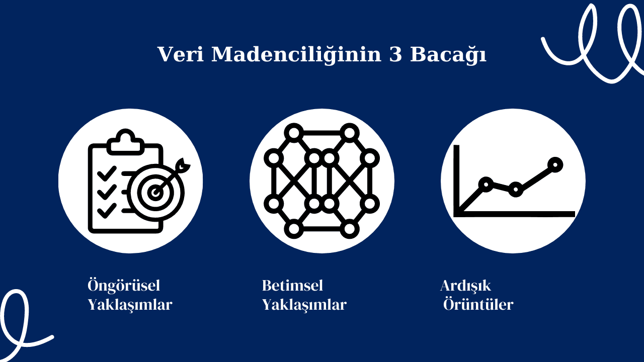 Durum böyle olunca bu kadar çok verinin içinde kaybolmamak büyük bir önem kazanmaktadır. Bu veri yığınları içerisindeki değerli bilgileri bulmak ve onları doğru bir şekilde kullanmak hem çok önemli hem de oldukça zor bir hal almaktadır. Tam bu noktada, bizim karşımıza büyük veri madenciliği çıkıyor. Büyük veri madenciliği, analitik bir sistem içinde bulunmaktadır. Geleneksel veri sistemlerindeki analitiği aşarak, veri içerisindeki gizli örüntüleri bulmayı, bu verileri sınıflandırmayı ve mevcut veriden yola çıkarak yeni eklenen veriler hakkında öngörüde bulunmayı hedeflemektedir. Bu disiplin, işletmelere rekabet avantajı sağlama, karar verme süreçlerini iyileştirme, yeni iş fırsatlarını keşfetme ve hatta toplumda önemli sorunlara çözümler sunma konularında güçlü bir araç haline gelmiştir. Büyük veri madenciliğinin üç kategorisi vardır: öngörüsel yaklaşımlar, betimsel yaklaşımlar ve ardışık örüntüler.