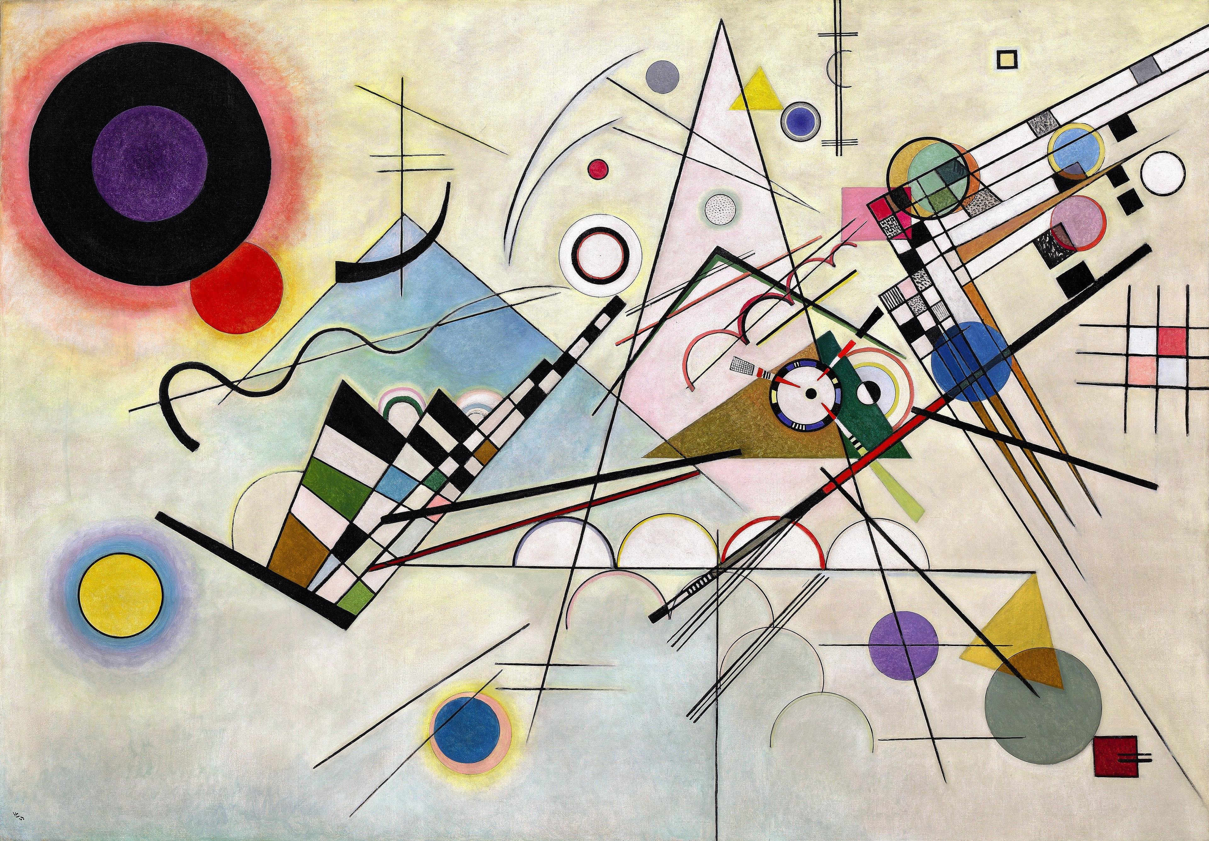 Sanatçının en ünlü tablolarından biri olan 1923' te yaptığı Composition VIII' i inceleyebiliriz. Bahaus'da öğretim üyesiyken yaptığı bu resimde sadece bulunduğu ekolün izlerini değil aynı zamanda Süprematizm ve Konstrüktivizmin de yankılarını görebiliriz. Kandinsky'e göre resimdeki siyah renk müzik açısından sessizliği anlatırken, turuncu renkler alto sesleri temsil ediyor. Mavi ve kırmızı dairelerin etrafını çevreleyen sarı renk ise trumpet sesi gibi yüksek sesleri simgeliyor. Resme uzun bir süre baktığınız zaman gerçekten de o titreşimi hissettiren bir yapısı olduğunu fark edeceksiniz.