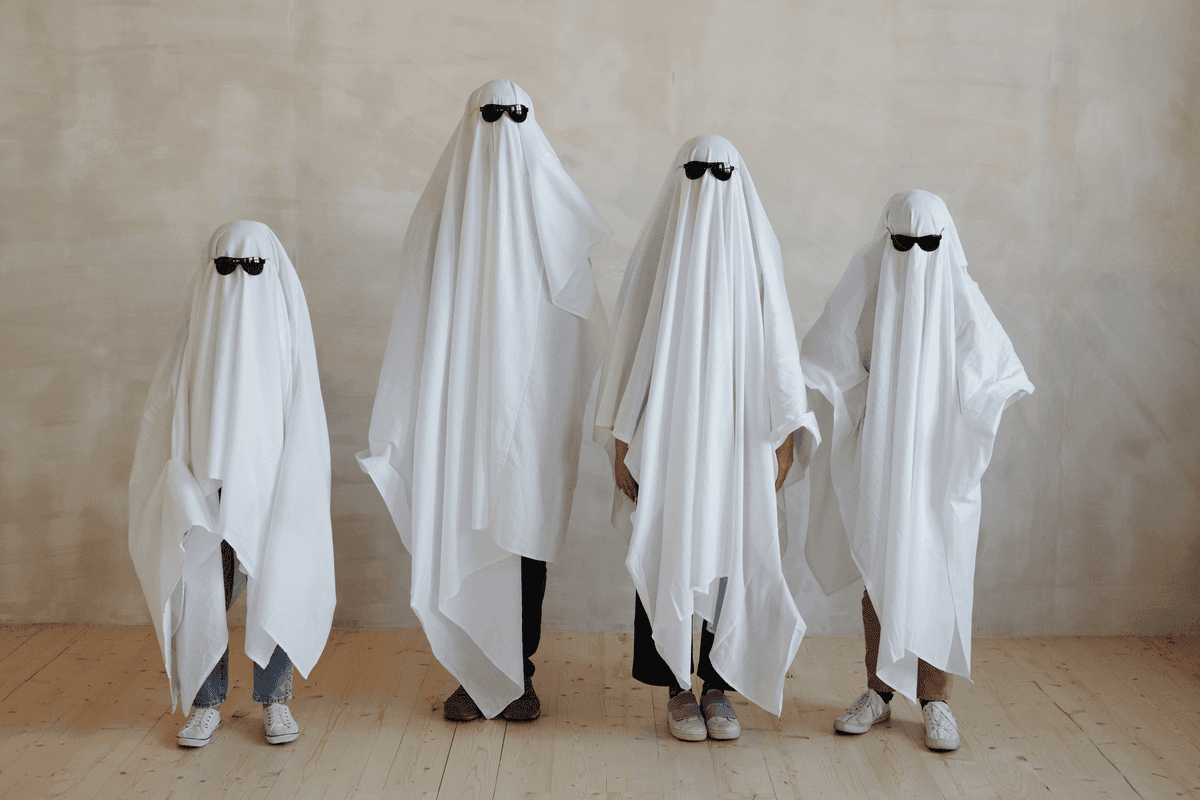Beyaz çarşafları veya beyaz kumaşı hayalet figürleri olarak kullanarak dekorasyona hayalet teması ekleyebilirsiniz. Bu hayaletleri ağaçlara veya tavanlara asabilirsiniz. Örneğin, avludaki ağaçlara beyaz çarşaf giydirip gözlerini siyah noktalarla işaretleyerek klasik bir hayalet etkisi yaratabilirsiniz.