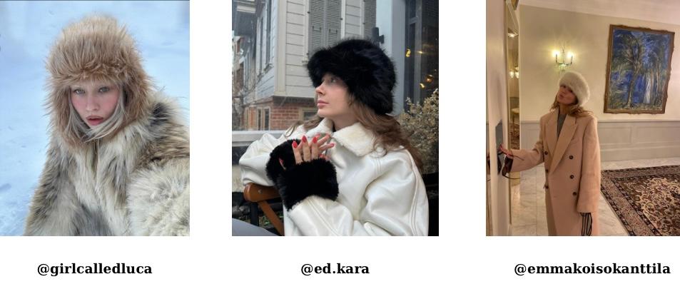 Suni kürk bu akımda en önemli kombin parçası. Soğuk iklim koşullarının miras bıraktığı giyim türü, istenilen gösterişli görünümü sağlamada en önemli rolü oynuyor. Peluş/kürk şapka, aynı şekilde peluş ve kürkten oluşan her çeşit şapka ve saç bandı, bu görünümü tamamlamada oldukça önemli.