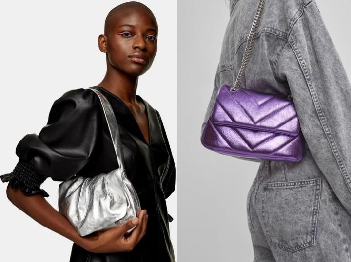 Ayakkabılarda, pantolonlarda kullanılan metalik renkler, en sonunda çantalarda da yerini buldu. Göz alıcı ve kombinlemesi eğlenceli olan bu renk çantalarda oldukça ilgi gördü ve pek çok podyumda görüldü. Görünüşüne capcanlı ve enerjik dokunuşlar eklemek isteyenler için oldukça iddialı bir aksesuar.