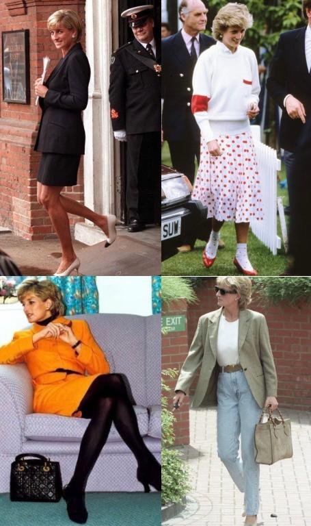 Diana’nın kıyafetlerinden bahsedecek olursak; pantolon takımları, bileklerini öne çıkartacak bilek boy etekler, renkli muz çoraplar, zarif stilettolar tercih ettiği kıyafetler arasındadır.