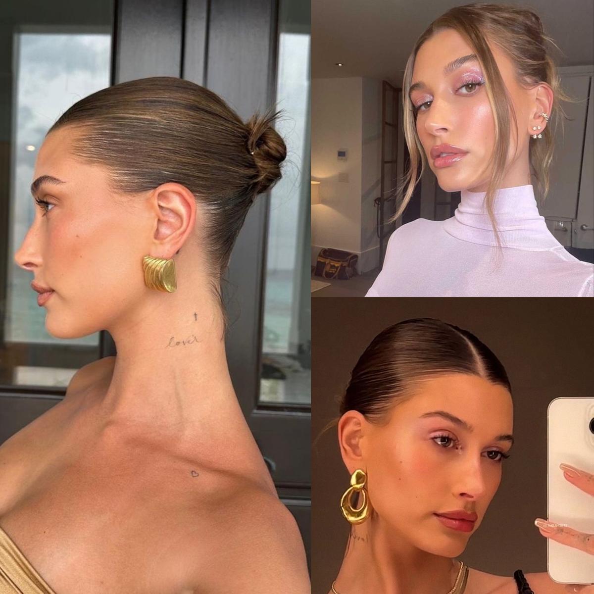Saç konusunda da bir fikri var. İster makyajınızı öne çıkarmak için isterseniz de kombininizde bir şıklık yaratmak için “Sleek Bun” ya da “Messy Bun” saç stillerinden yararlanabilirsiniz. Küçükken okula giderken yaptığımız sımsıkı topuzlar Hailey sayesinde hayatımıza tekrar girmeyi başardı. Buradaki tek amaç saç ayrımını pürüzsüz bir çizgi haline getirip enseye yakın bir topuz yapmak. Önlerden bir tutam saç ayırıp dalga da verebilirsiniz. Bu trendde önemli olan sıkı bir topuz yapmak, ama saç ayrımını farklı şekillerde yapıp farklılık yaratabilirsiniz ya da topuzunuzu örgü şeklinde sarabilirsiniz.